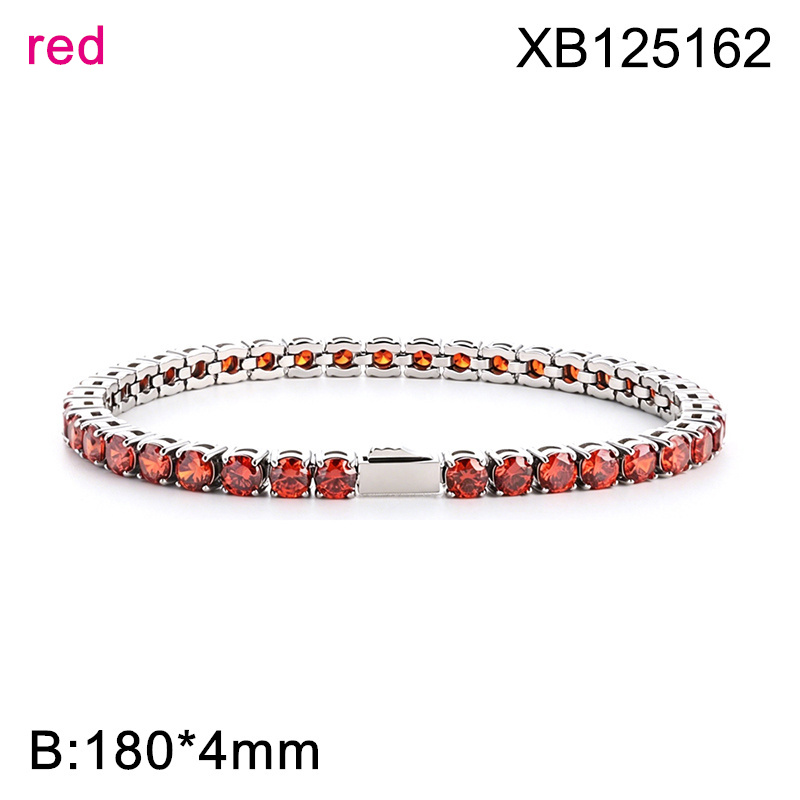 Level B Hot Sale Women Jewelry Steel color Red Round 316 Stainless Steel Cubic Zirconia Tennis Bracelet