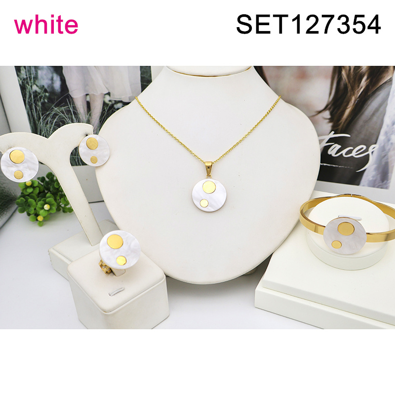 Level B Stainless Steel New Trendy Women Jewelry White Round Resin Golden 4 pcs SET