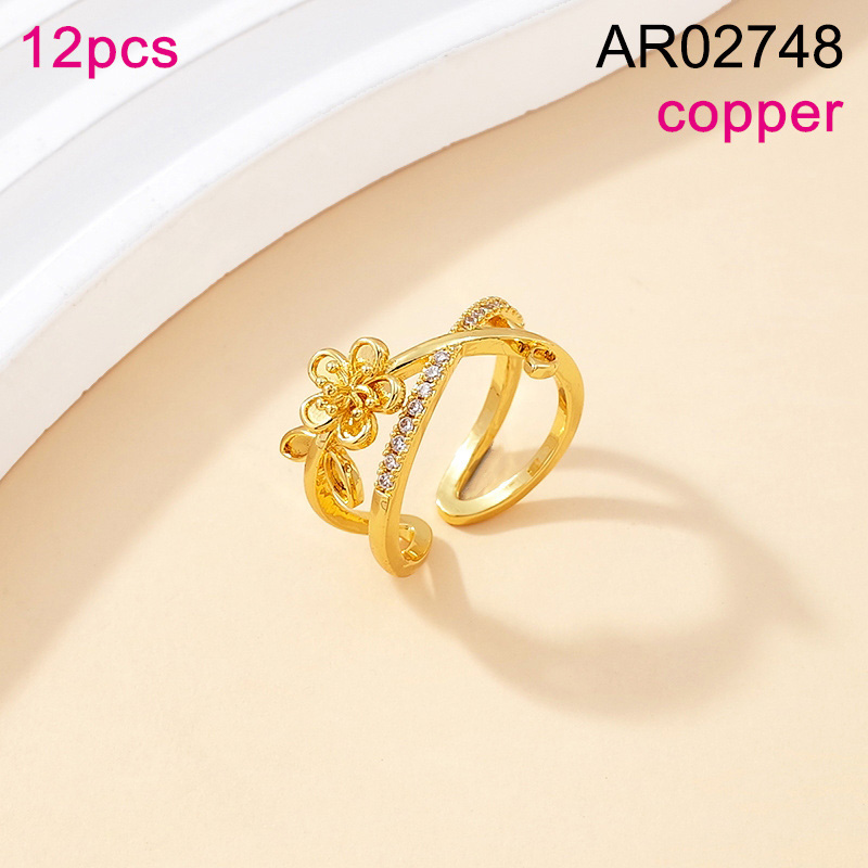 Level C Fashion Jewelry New Trendy Women Jewelry Flower Golden Open Rings;Ring size can be adjusted freely