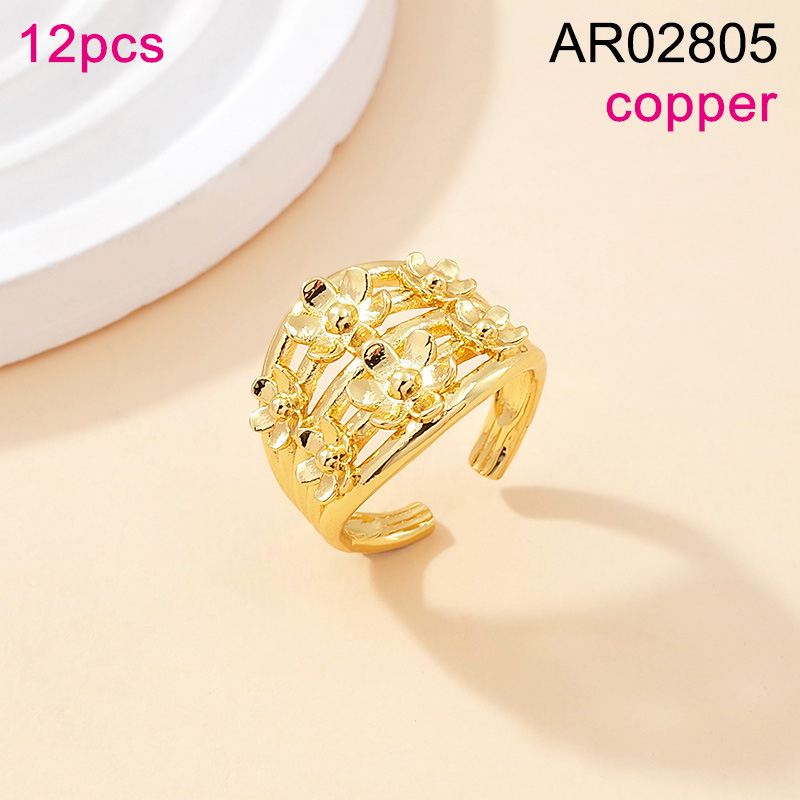 Level C Fashion Jewelry New Trendy Women Jewelry Flower Golden Open Rings;Ring size can be adjusted freely