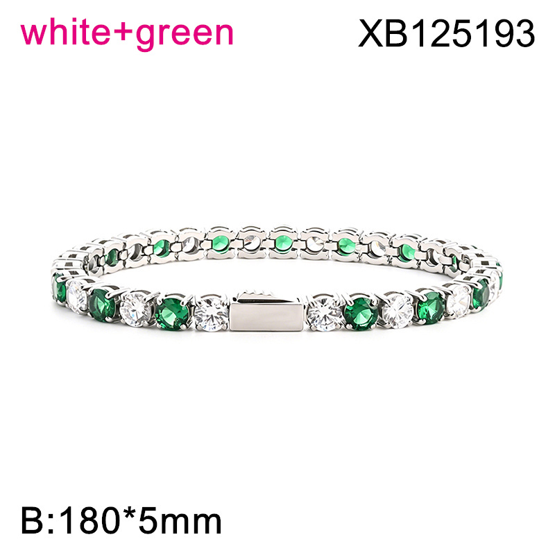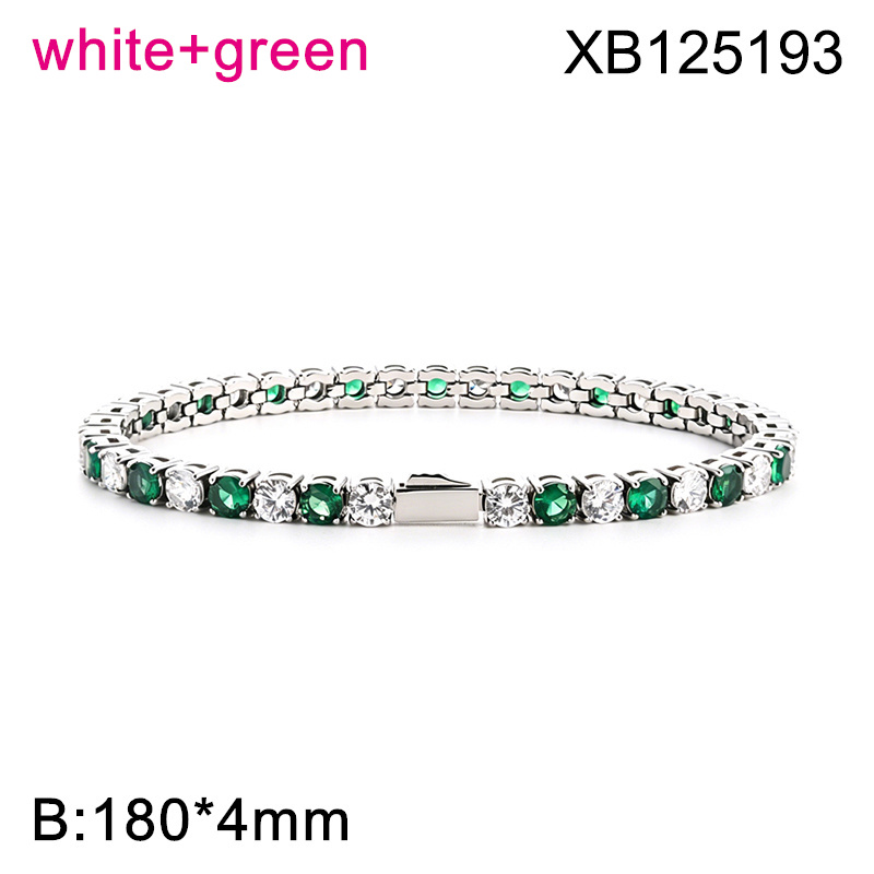 Level B Hot Sale Women Jewelry Steel color White+Green Round 316 Stainless Steel Cubic Zirconia Tennis Bracelet