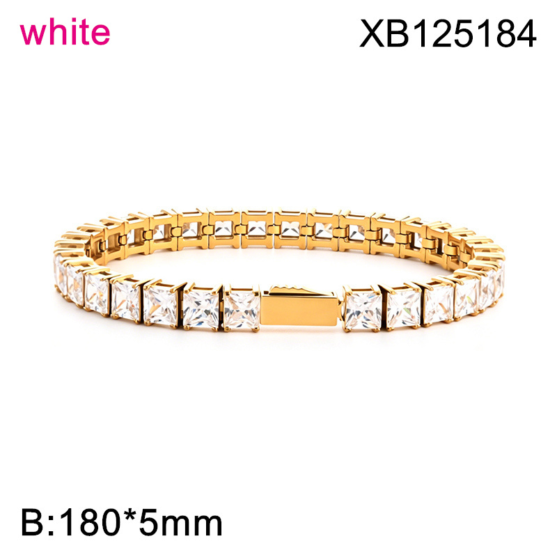 Level B Hot Sale Women Jewelry Golden White Square 316 Stainless Steel Cubic Zirconia Tennis Bracelet