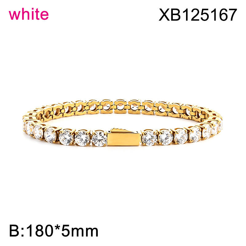 Level B Hot Sale Women Jewelry Golden White Round 316 Stainless Steel Cubic Zirconia Tennis Bracelet