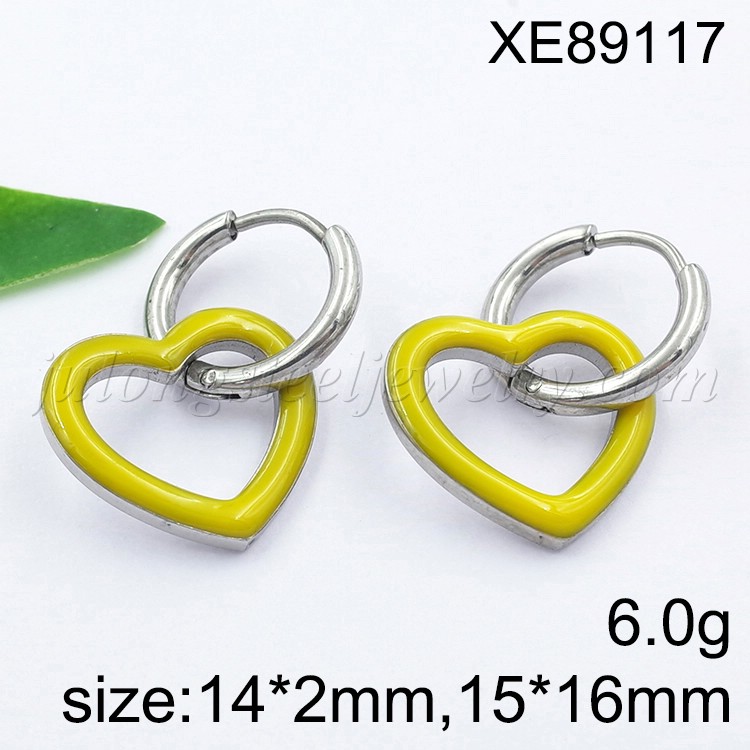 Stainless Steel Jewelry Yellow Drip Oil/Enamel Heart Drop Earrings