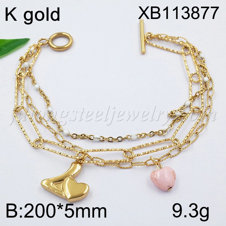 Stainless Steel Jewelry Three Layer Chain Love Golden Bracelet