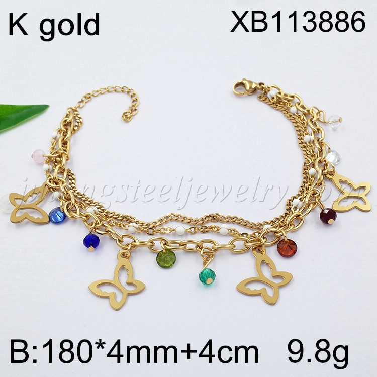 Stainless Steel Jewelry Three Layer Chain Butterfly Golden Bracelet