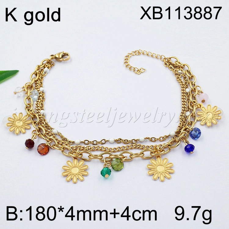 Stainless Steel Jewelry Three Layer Chain Flower Golden Bracelet