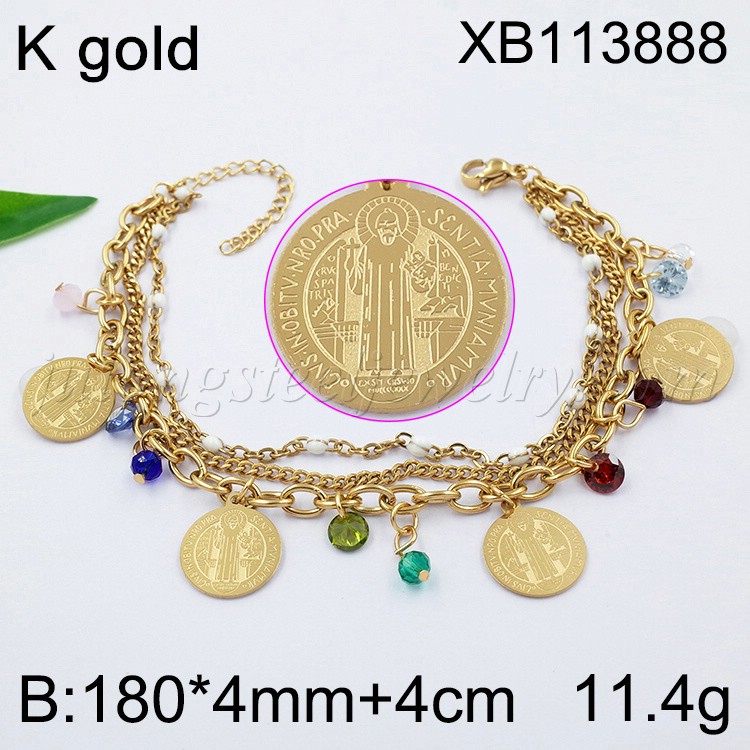 Stainless Steel Jewelry Three Layer Chain Religion Golden Bracelet