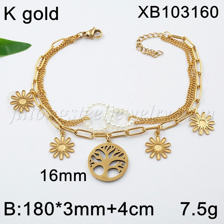 Stainless Steel Jewelry Tree/Flower Charms Gold Plated Two Layer Chain Bracelet