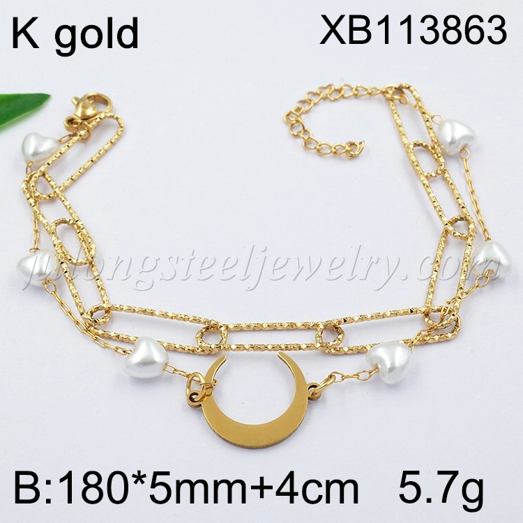 Stainless Steel Jewelry Two Layers Chain Imitation Pearl Moon Golden Bracelet