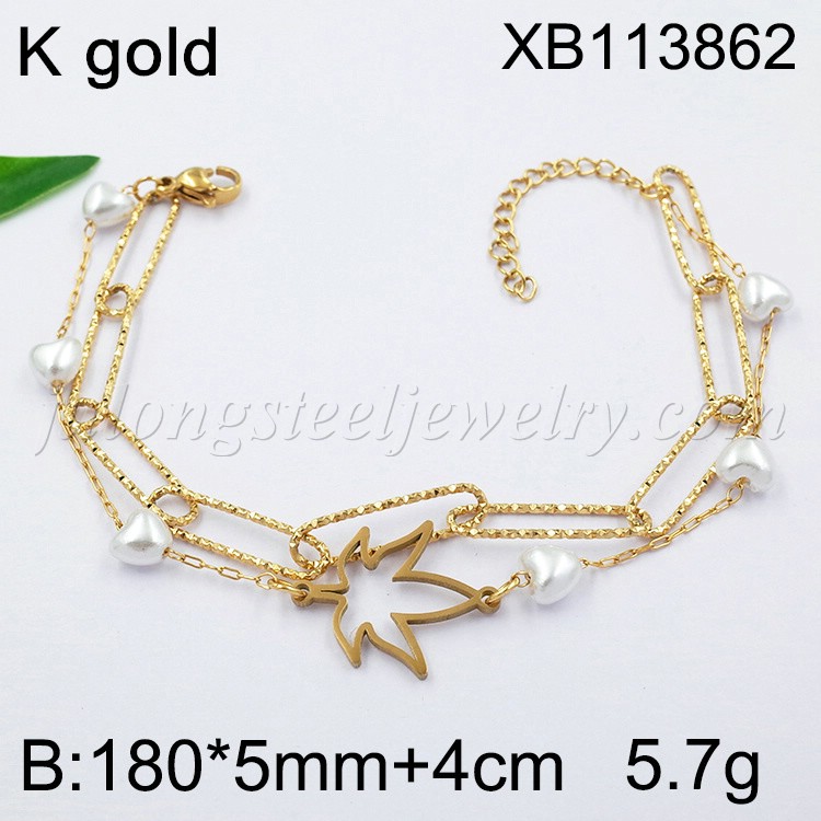 Stainless Steel Jewelry Two Layers Chain Imitation Pearl Heart Bracelet