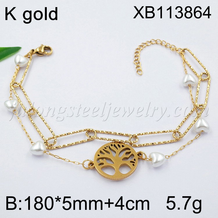 Stainless Steel Jewelry Two Layers Chain Imitation Pearl Tree Golden Bracelet
