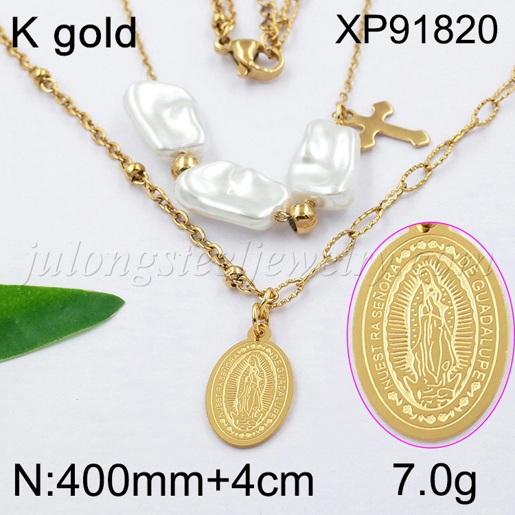 Stainless Steel Jewelry Two Layers Chain Imitation Pearl Religion Golden Pendant