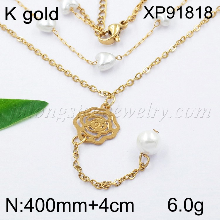 Stainless Steel Jewelry Two Layers Chain Imitation Pearl Flower Golden Pendant