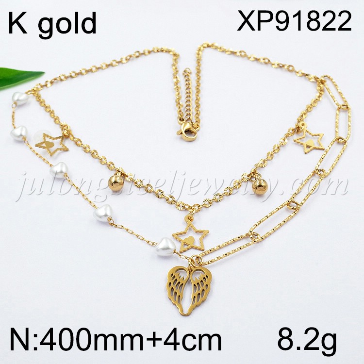 Stainless Steel Jewelry Two Layers Chain Imitation Pearl Wing Golden Pendant