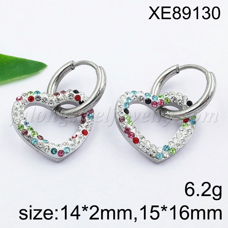 Stainless Steel Jewelry White Clay Sticky Rhinestone Heart Drop Earrings