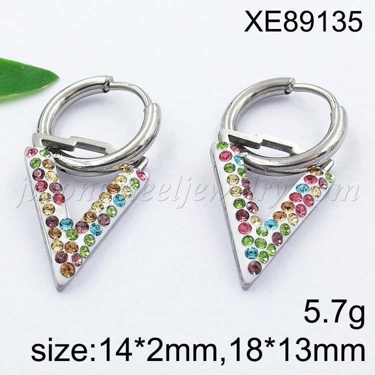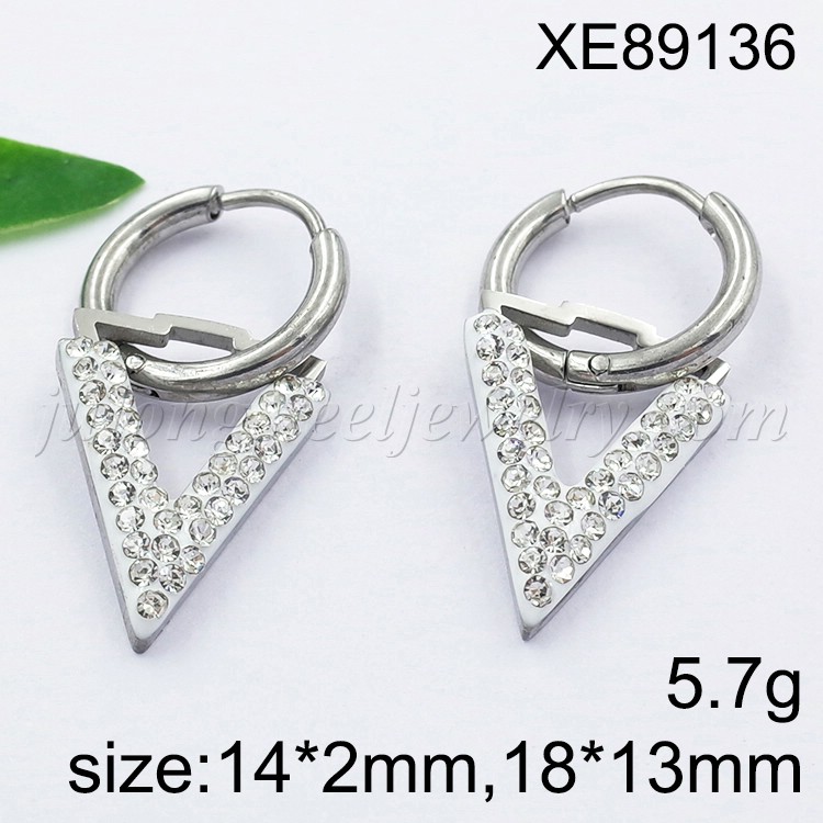 Stainless Steel Jewelry White Clay Sticky Rhinestone Triangle Drop Earrings