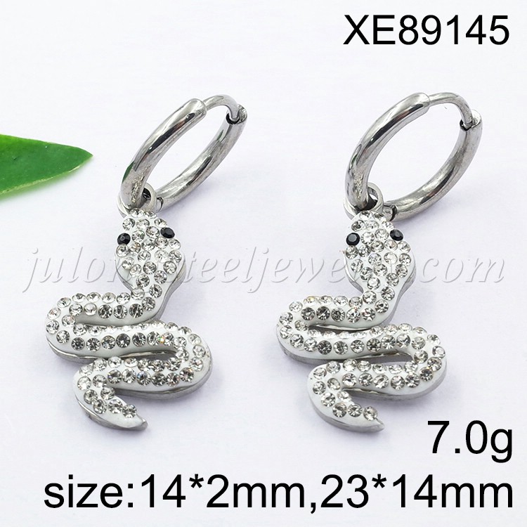 Stainless Steel Jewelry White Clay Sticky Rhinestone Snake Drop Earrings