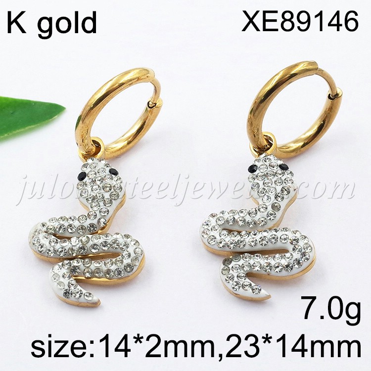 Stainless Steel Jewelry White Clay Sticky Rhinestone Snake Golden Drop Earrings