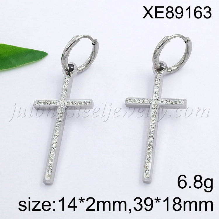Stainless Steel Jewelry White Clay Sticky Rhinestone Cross Drop Earrings
