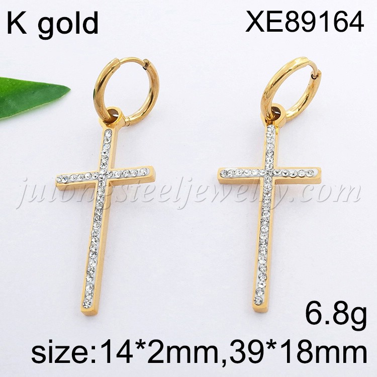 Stainless Steel Jewelry White Clay Sticky Rhinestone Cross Golden Drop Earrings