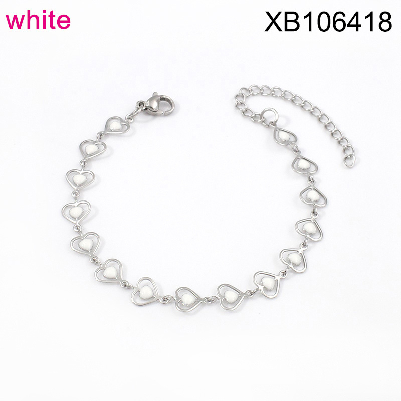 Level B Stainless Steel Jewelry New Trendy Drip Oil/Enamel White Heart Bracelet