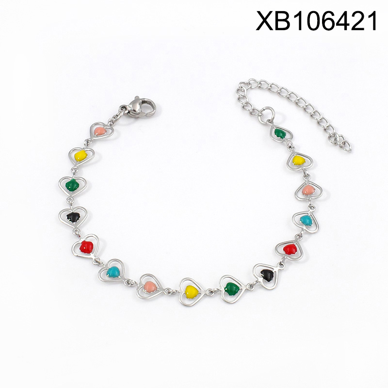 Level B Stainless Steel Jewelry New Trendy Drip Oil/Enamel Mixed color Heart Bracelet