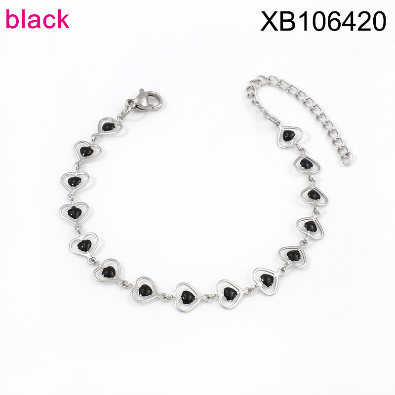 Level B Stainless Steel Jewelry New Trendy Drip Oil/Enamel Black Heart Bracelet