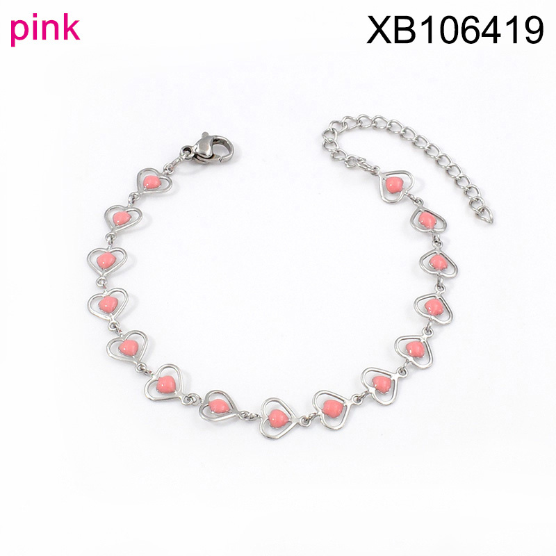 Level B Stainless Steel Jewelry New Trendy Drip Oil/Enamel Pink Heart Bracelet