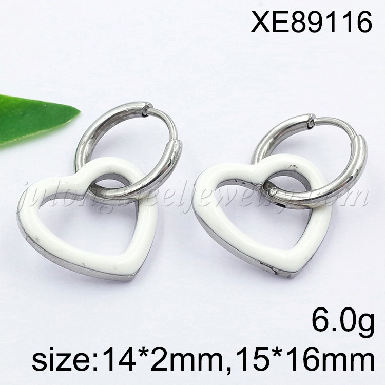 Stainless Steel Jewelry White Drip Oil/Enamel Heart Drop Earrings