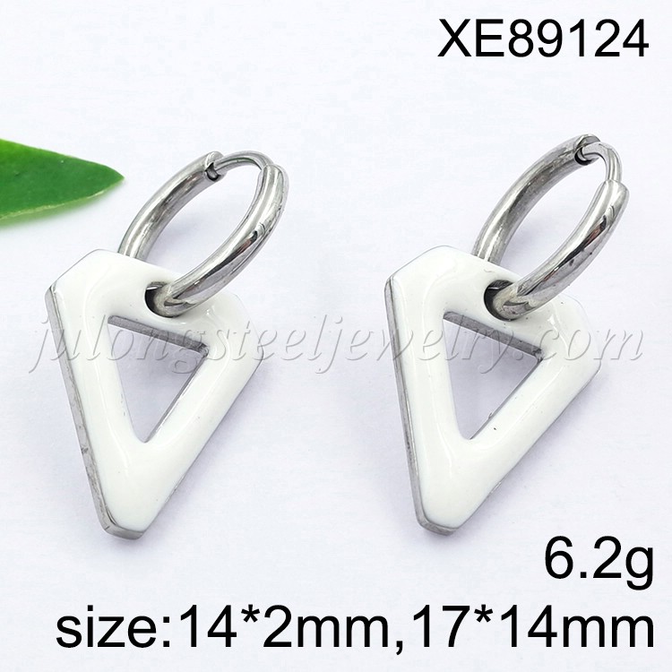 Stainless Steel Jewelry White Drip Oil/Enamel Triangle Drop Earrings