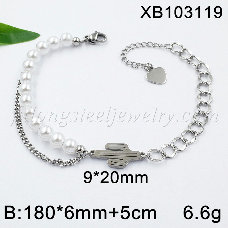 Stainless Steel Jewelry White Plastic Beads Cactus Charm Chain Bracelet