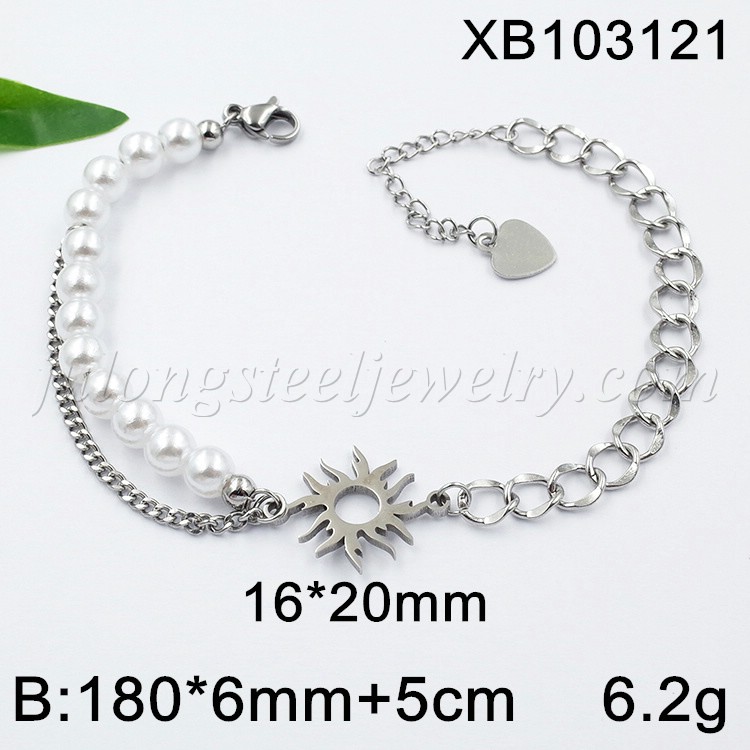 Stainless Steel Jewelry White Plastic Beads Sum Flame Charm Chain Bracelet
