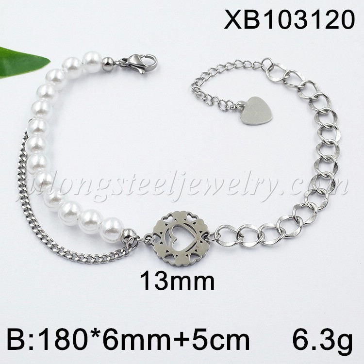 Stainless Steel Jewelry White Plastic Beads Heart Charm Chain Bracelet