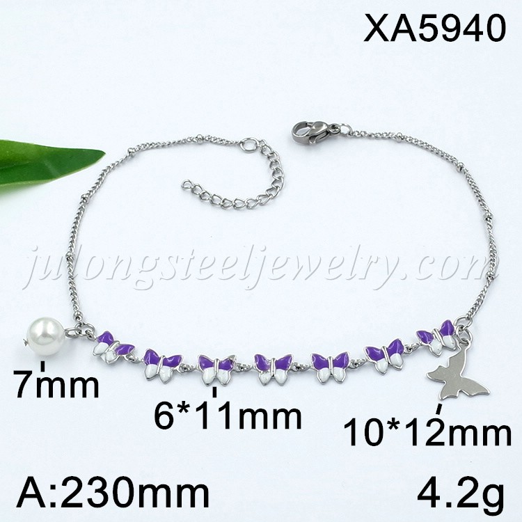 Stainless Steel Pearl Style Butterfly Charms Anklet