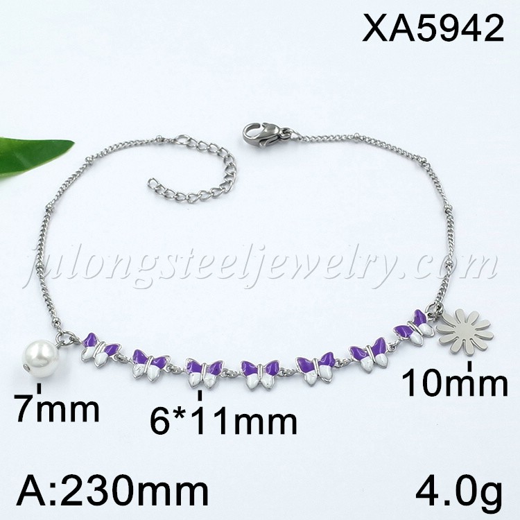 Stainless Steel Pearl Style Butterfly Flower Charms Anklet