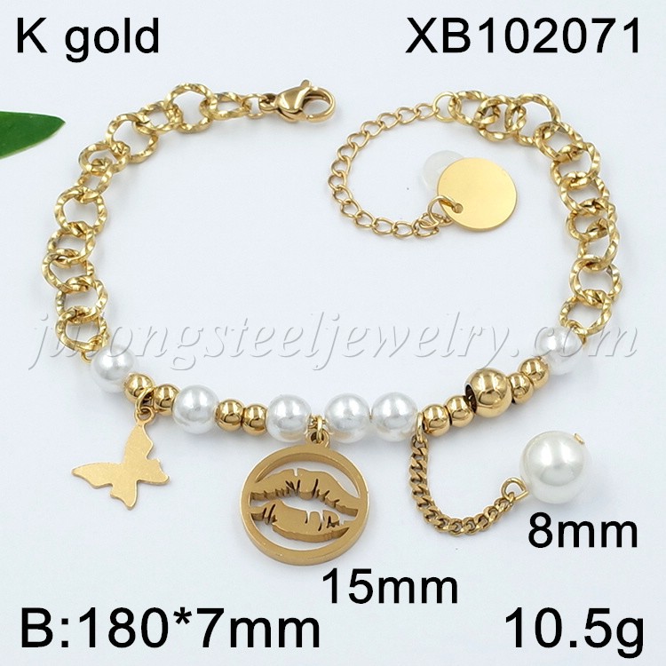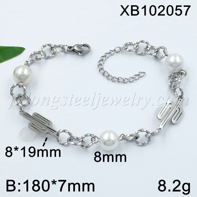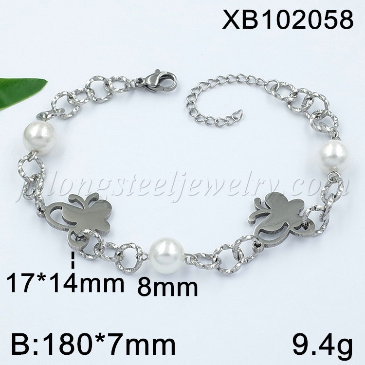 Stainless Steel Pearl Style Butterfly Charms Bracelet