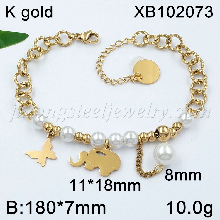 Stainless Steel Pearl Style Butterfly Elephant Charms Bracelet