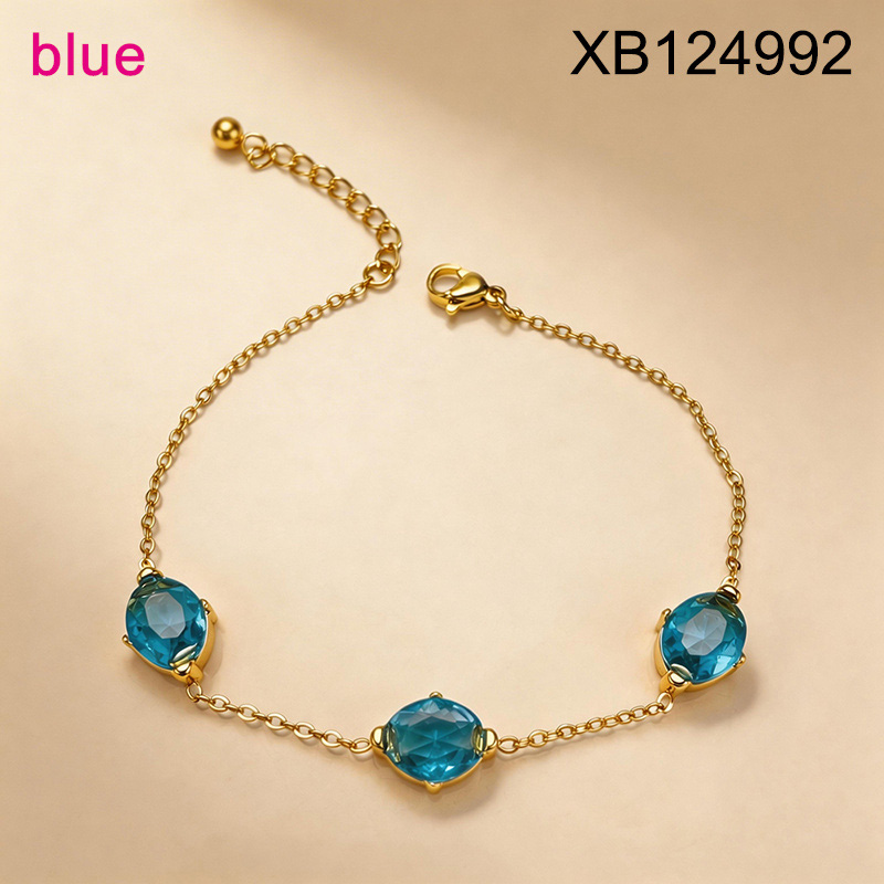 Level B Stainless Steel New Trendy Women Jewelry Oval Blue Crystal zirconium Golden Bracelet