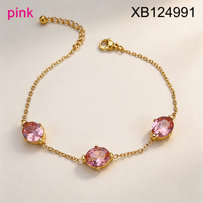 Level B Stainless Steel New Trendy Women Jewelry Oval Pink Crystal zirconium Golden Bracelet