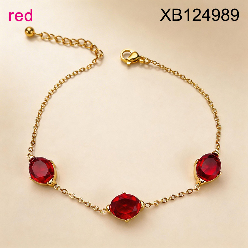 Level B Stainless Steel New Trendy Women Jewelry Oval Red Crystal zirconium Golden Bracelet