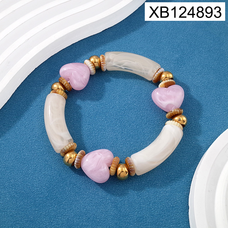 Level B Stainless Steel New Trendy Women Jewelry Resin Heart Golden Mother's Day Elastic Bracelet