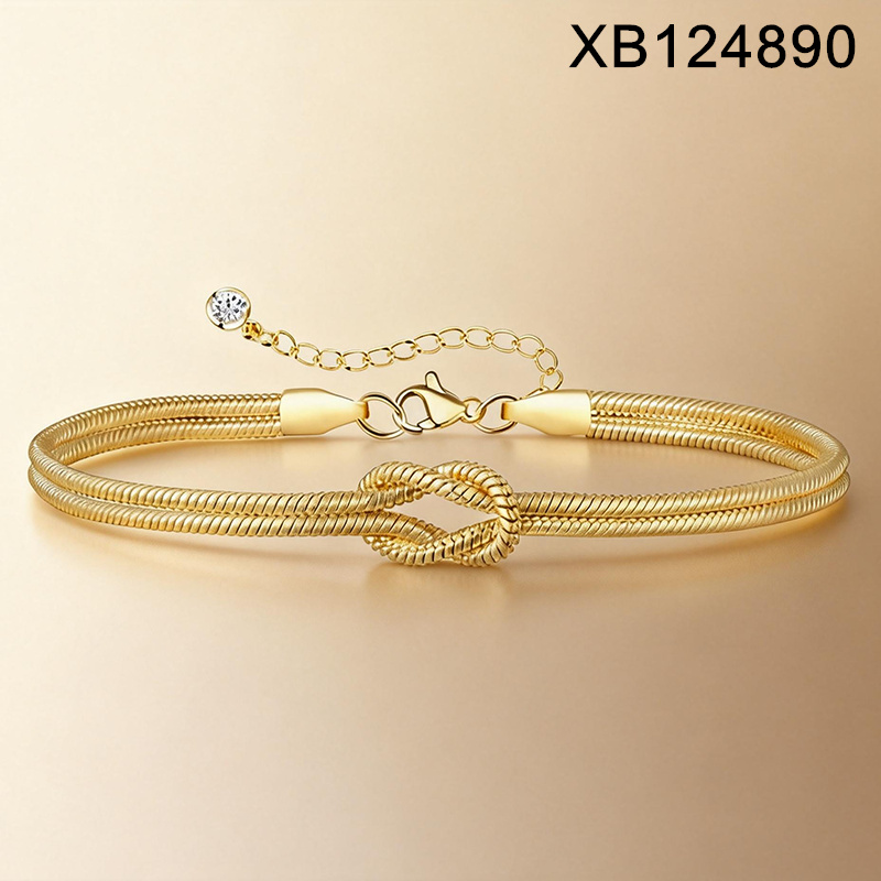 Level B Stainless Steel New Trendy Women Jewelry Two Layers Chain Knot Golden Bracelet