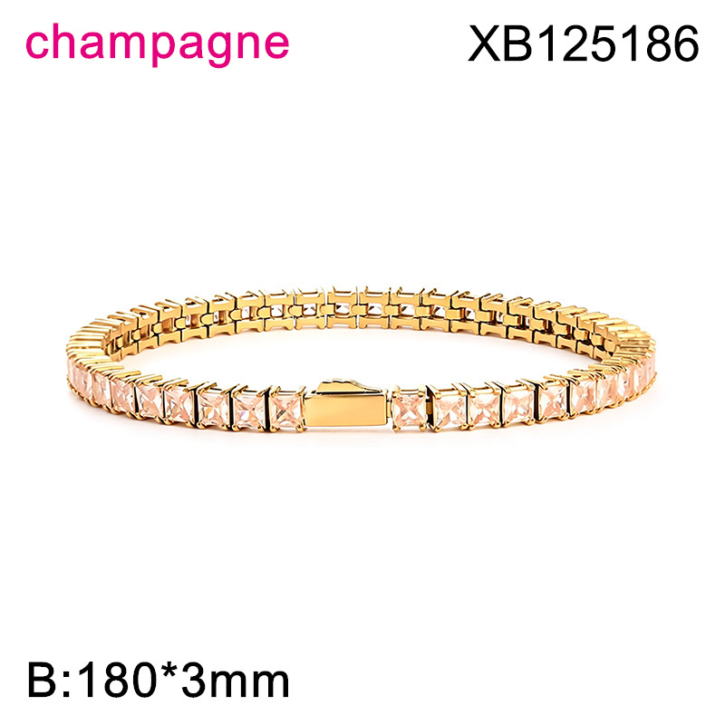 Level B Hot Sale Women Jewelry Golden Champagne Square 316 Stainless Steel Cubic Zirconia Tennis Bracelet