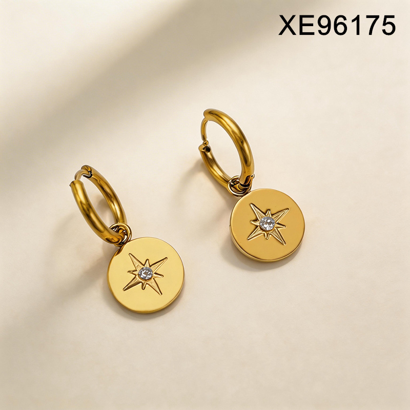 Level B Stainless Steel New Trendy Women Jewelry Eight pointed star Zircon Golden Hoop Earrings