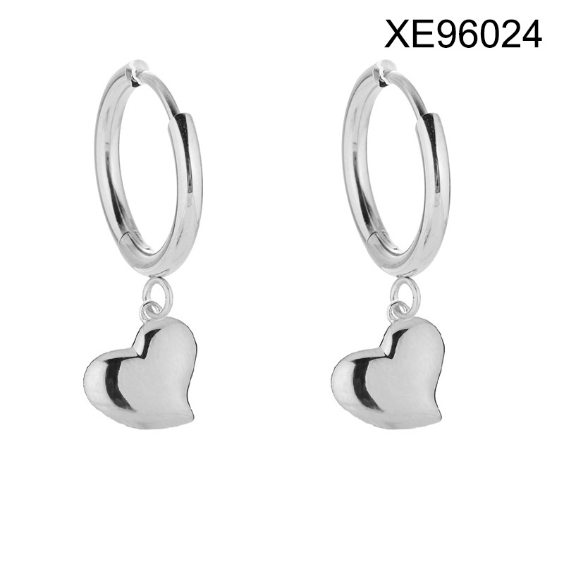 Level B Stainless Steel New Trendy Women Jewelry Heart Steel color Valentine's Day Hoop Earrings
