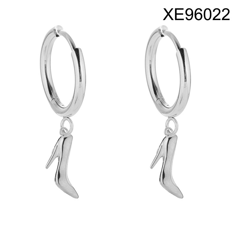 Level B Stainless Steel New Trendy Women Jewelry High heels Steel color Hoop Earrings