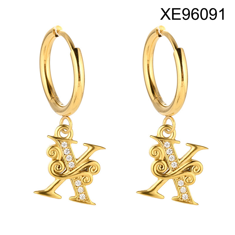 Level B Stainless Steel New Trendy Women Jewelry Letter X Golden Hoop Earrings