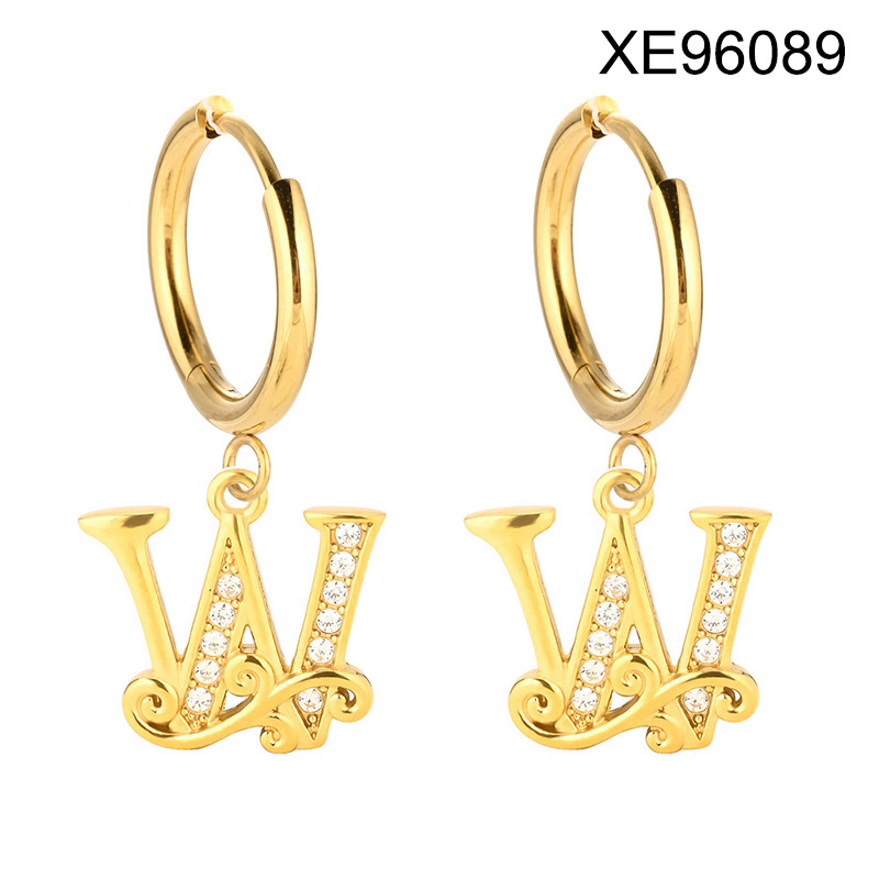 Level B Stainless Steel New Trendy Women Jewelry Letter W Golden Hoop Earrings
