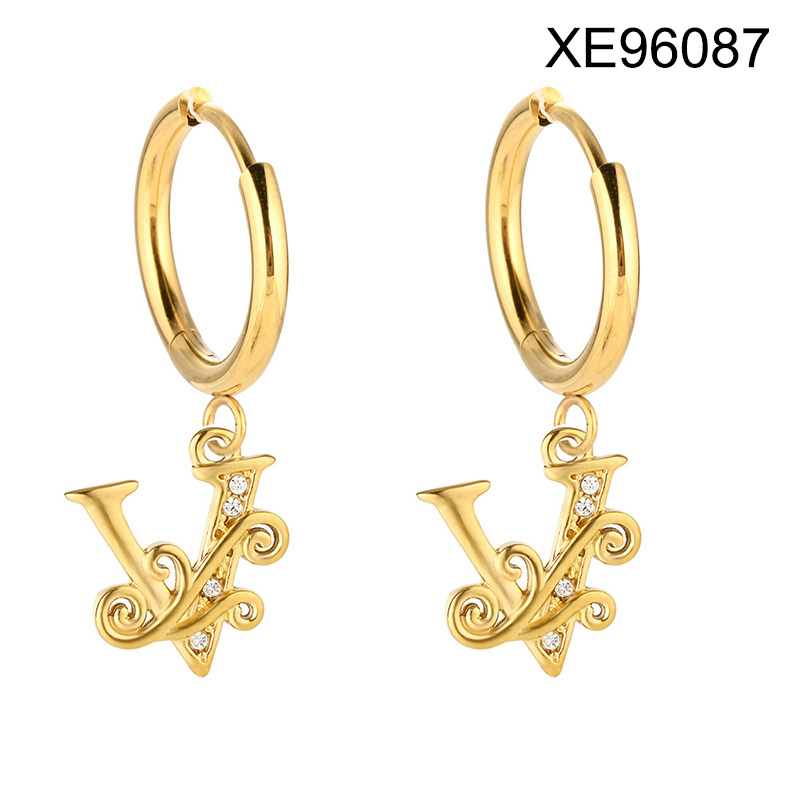 Level B Stainless Steel New Trendy Women Jewelry Letter V Golden Hoop Earrings